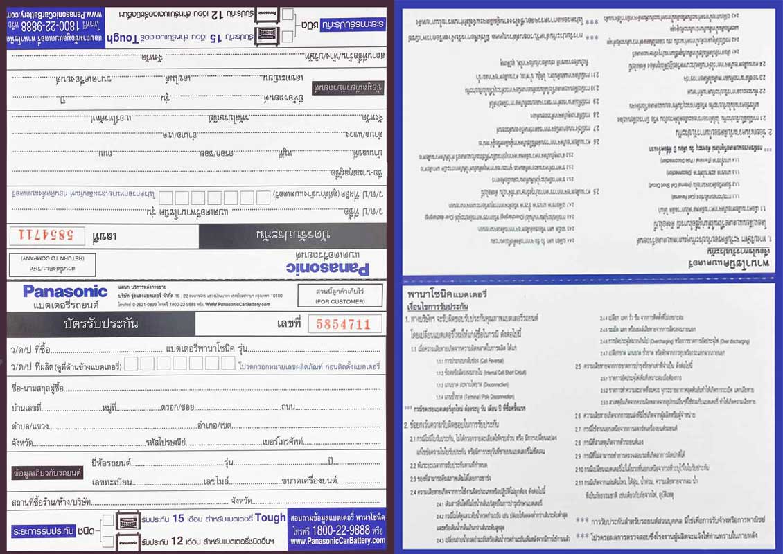 ใบรับประกัน Panasonic Battery