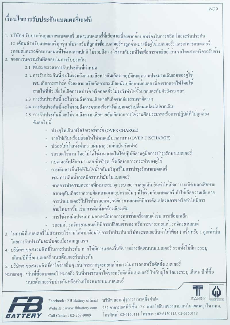 ใบรับประกัน FB Battery