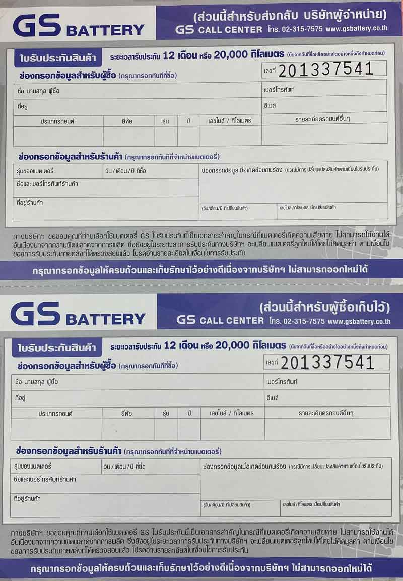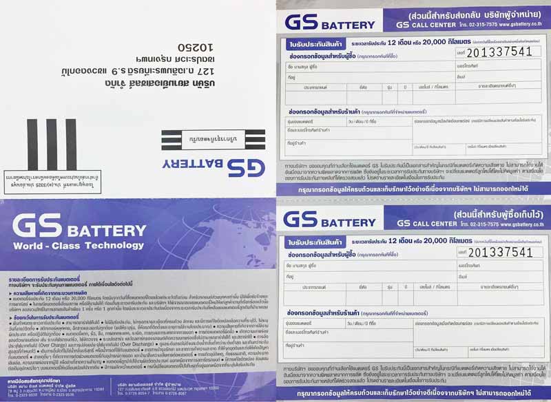 ใบรับประกัน GS Battery...