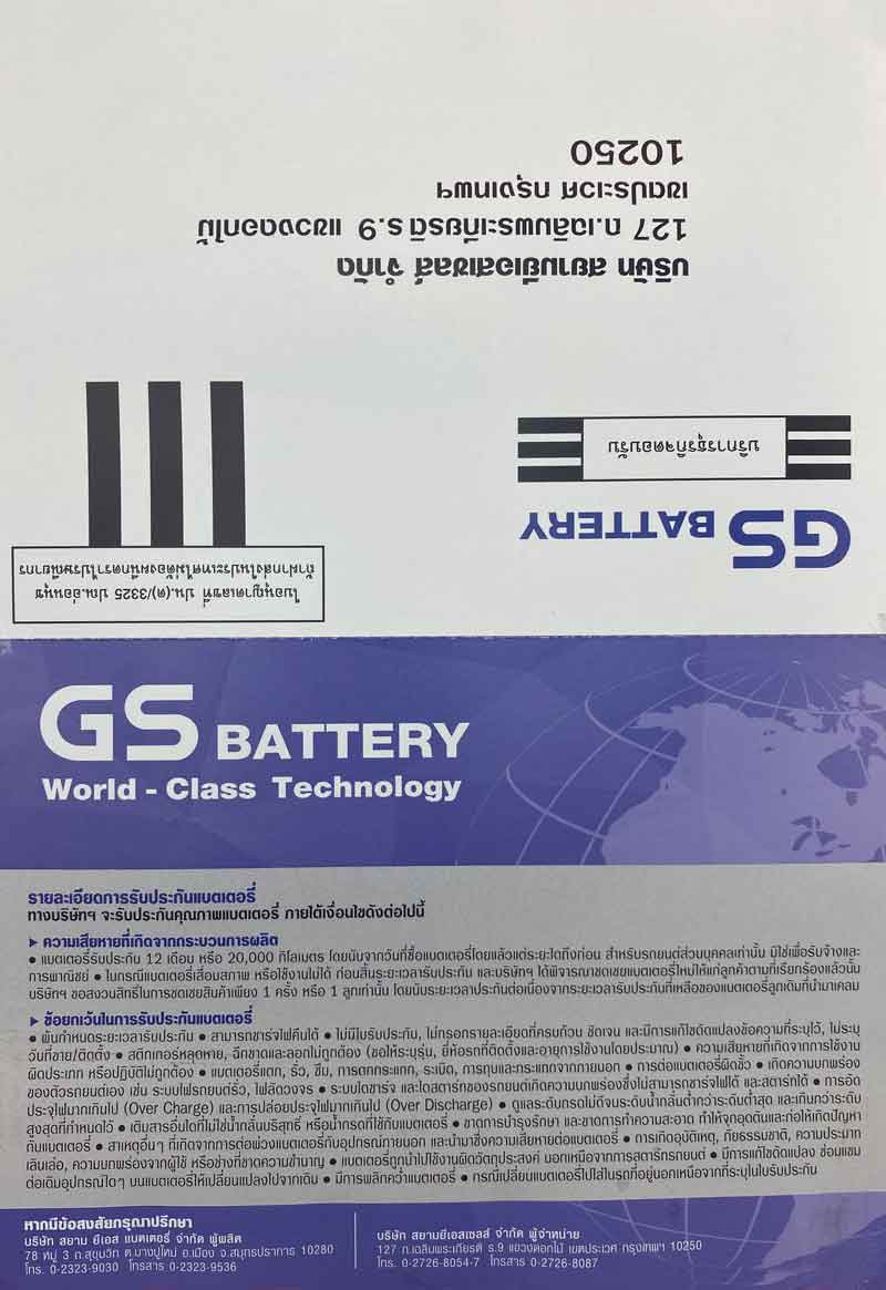 ใบรับประกัน GS Battery หลัง