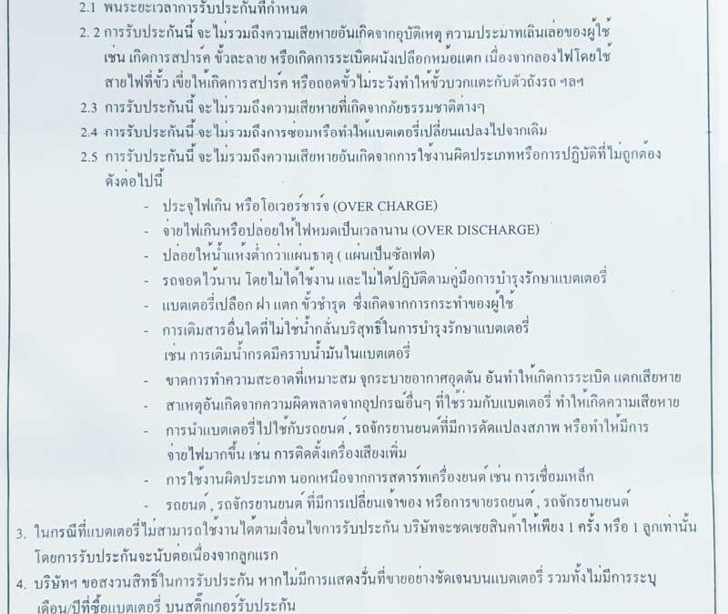 เงื่อนไขการรับประกัน GS Battery